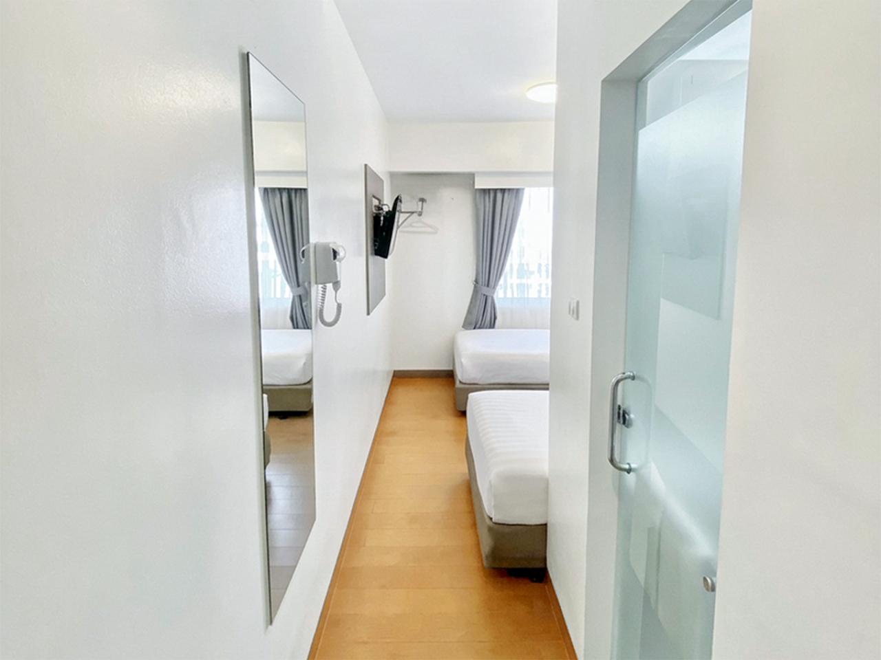 A comfortable accommodation for sharers and groups, this well-appointed hotel room features two of our signature comfortable single beds for a restful night’s sleep, a flat-screen TV with cable channels for entertainment, a secure in-room safe deposit box, complimentary high-speed WiFi 6, and reliable air-conditioning for all-day comfort.